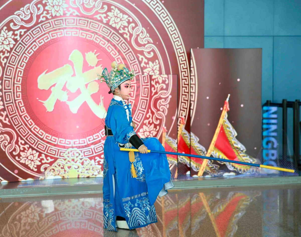 1月17日下午,宁波栎社国际机场1号航站楼内洋溢着浓厚的节日氛围,一场“戏曲文化润心田·传统魅力奏华章”为主题的戏曲快闪活动在这里精彩上演。